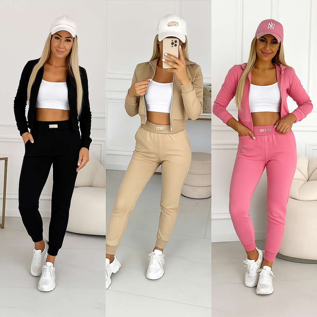 Letar du efter ett set som känns fantastiskt, ser snyggt ut och passar till allt? Frigg™ är ett noggrant sammansatt 3-delars träningsset – jacka, topp och byxa – designat för kvinnor som vill känna sig bekväma och självsäkra varje dag. Den mjuka kvaliteten, smarta passformen och stilrena looken gör Frigg™ till ett givet val för både hemmamys och ärenden på stan.