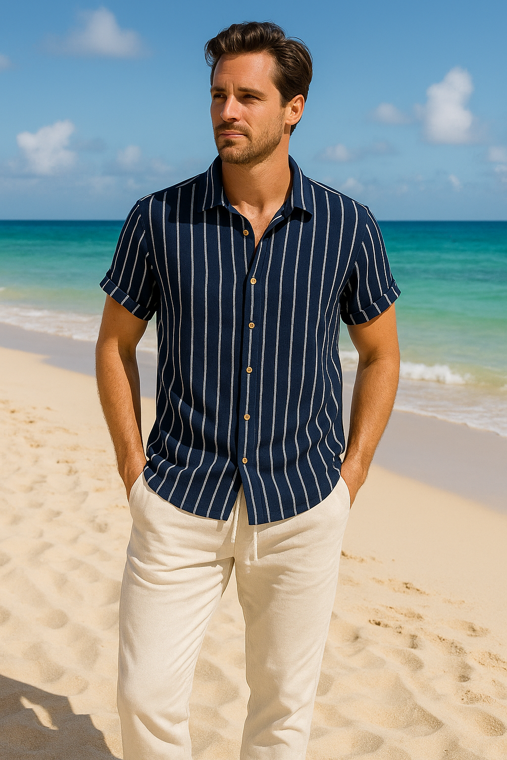 Joakim™ | Stiligt Randigt Skjorta & Linnebyxor – Komfort i Stil