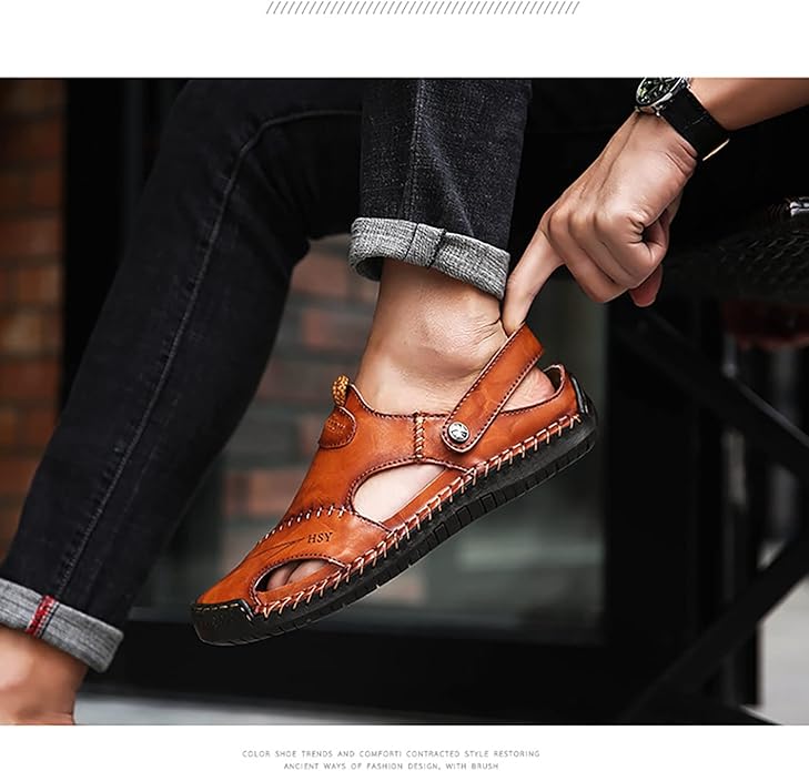 MJUK OCH BEKVÄM KROPP: Dessa sandaler är tillverkade av spaltläder och ger en mjuk och bekväm känsla, perfekt för långvarig användning under avslappnade aktiviteter.