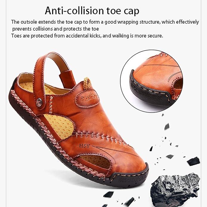Våra sandaler har ett tåhätta med antikollisionsskydd för extra skydd och en slitstark, halkskyddad TPR-gummisula för bra grepp. Oavsett om du utforskar stadens gator eller kopplar av på stranden ger de här sandalerna den perfekta blandningen av stöd och stil.